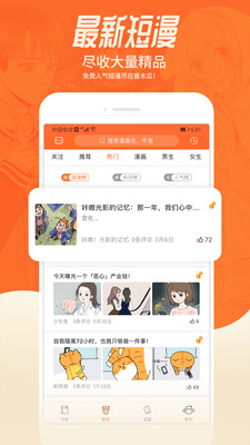 1、种类齐全任君挑选:国漫、日漫、美漫、完结的、热血的、恋爱的漫画统统搜罗,分类齐全,草莓漫画App为爱漫画的你量身打造一个漫画天堂。