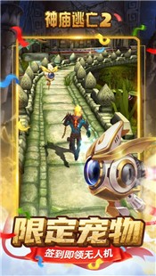 《神庙奔跑2》是一款3D卡通风格的动作冒险游戏,玩家必须冷静奔跑才能躲避这座危险神庙中的怪兽。逃生的方法是遇到各种器官和障碍。玩家需要灵活操作以避免,并且可以沿途收集道具和金币。现在游戏的地图和屏幕都完全升级了,但不变的是好玩。现在就加入游戏吧。