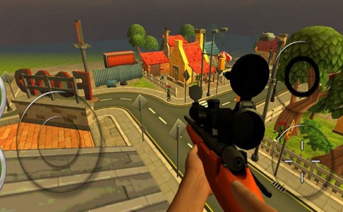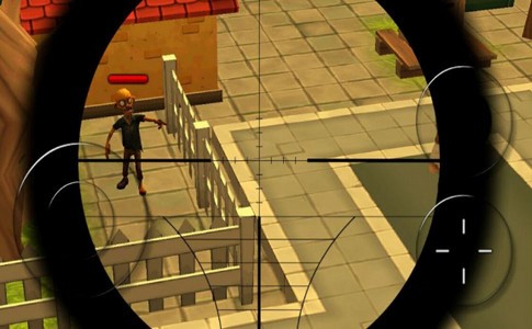 单击目标以打开狙击步枪的范围,瞄准僵尸的头部并开始射击。