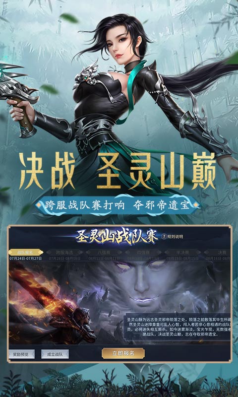 2、新玩法—决战圣灵山:远古圣灵邪帝陨落之处,散落其毕生所藏,然圣灵山迷障重重可乱人心智,闯入者若非心意相通的战队队员,必将迷失相互厮杀。如今迷雾渐淡,宝光乍现,无数强者组建战队,决战圣灵山巅,志在夺取邪帝遗宝。