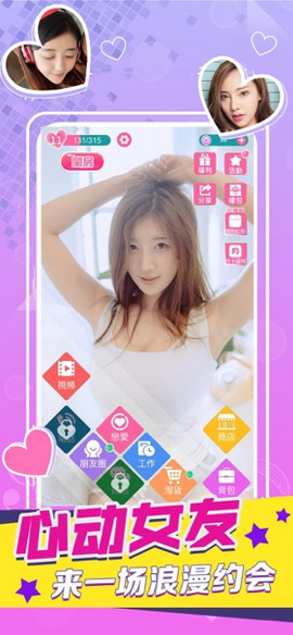 1、享受真人美眉的甜蜜爱恋,与你的女友甜蜜互动,多种职业任意选择;