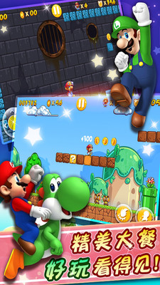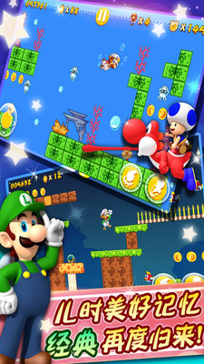 b、马里奥还有各种强力的形态,玩家的玩法再度升级,简单的跳跃已经无法满足,还有飞天关和潜水关精彩不停。