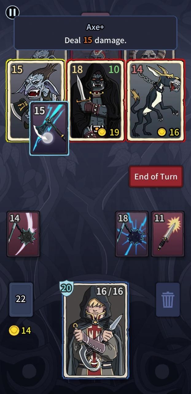 您可以为您的卡牌人物装备不同的武器并提高其强度。