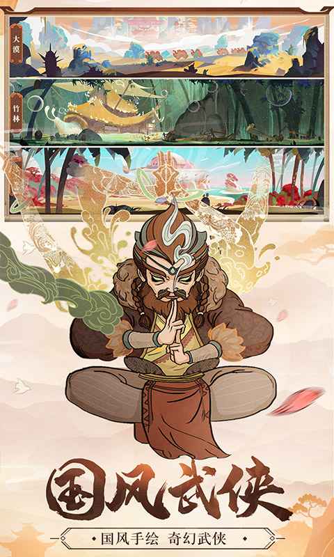古今江湖的美术画风主要是国风水彩手绘的武侠风,融入了一些传统文化元素。游戏的背景、人物、道具都采用的是国风水彩手绘风,搭配上极具想象力的造型,为玩家打造了一个独一无二的武侠世界。而武侠的展示界面融入了传统的泥人文化,让人物更加的亮眼。