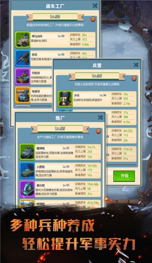不肝不氪,轻松休闲,摆放得收益,帮你轻松发展,各种军事堡垒建筑升级,为你提供丰富的后备资源,真实的战争恢复体验,感受热血激情,每一场战争都是硬仗,大出击,冲破敌人防线。