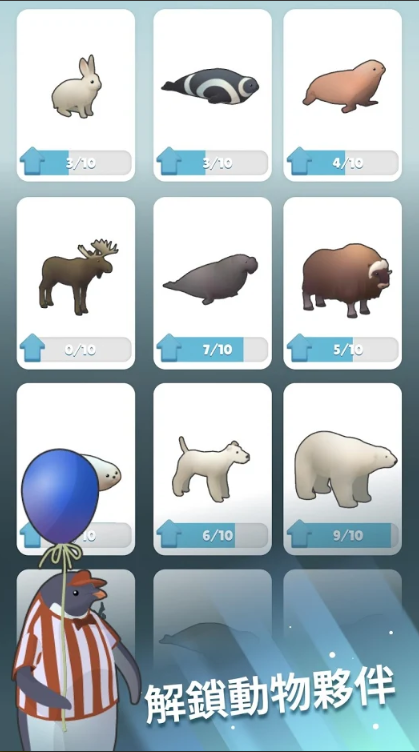 2、丰富的动物伙伴们可以尽情的收集获取,帮助企鹅寻找更多的伙伴;