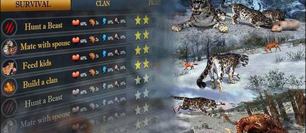 一款模拟生存类型的游戏。游戏中你将成为一只强壮的雪豹,在雪地里争夺领地,捕杀猎物,成立自己的家庭,然后为了保护妻儿跟凶残的入侵者搏斗,你能够在这里生存下去吗?