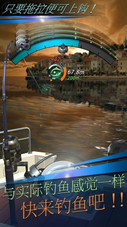 1、不仅画面制作的非常精美,操作方式也较为有趣,你在钓到大鱼后一方面必须按住鱼竿,同时还必须以必要的速度旋转才能保证成功哟!
