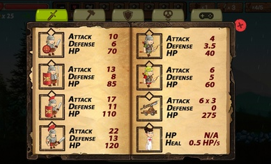 玩法就是用金币招募士兵,防御村庄两侧的敌人,最好别让他们死掉,因为士兵是由村民转变的,而村民是必须要先建造房屋后才会给你一个,转变的前提是要有步兵营或者弓箭手靶场,还要花肥金币转职,游戏中每3波后房屋会出产一个村民,宝贝的紧。