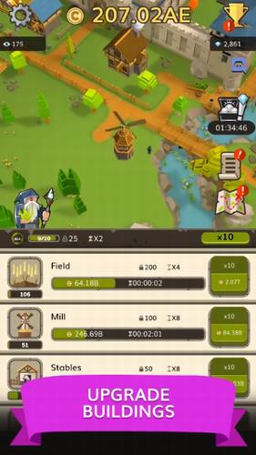 5、成为中世纪商业的运营者,聘请顾问 - 最好的闲置英雄 - 获得奖金。点击、开发新技术并从中获利!