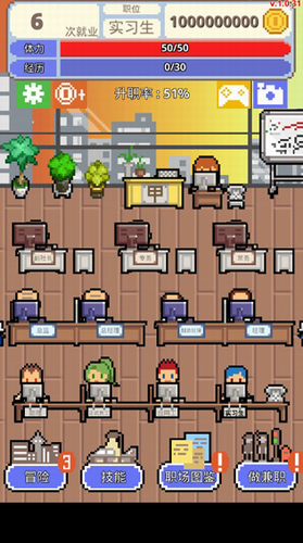 好不容易通过了面试,终于成为了一家公司的实习生,然而,从这里开始,玩家才刚刚要体验何为社会的残酷。从游戏的画面中可以看到整家公司完整的职务人员,从实习生到副社长,这就是玩家在之后的游戏中要不断向上攀登的过程。