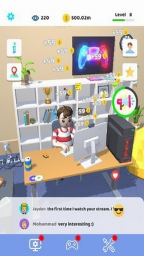 游戏中将实现你直播的梦想,我是网红汉化版玩家在游戏中化身为一名出色的网红,你是一名游戏主播,你每天的工作就是直播玩游戏,在你直播过程中会有粉丝给你打赏,以点击放置的操作为主,你需要不断的对你的设备以及技能进行升级,提升自己的人气值,拥有更多的粉丝。当个主播也能成为百万富翁,而且你的直播效果越好获得的收入也更多!