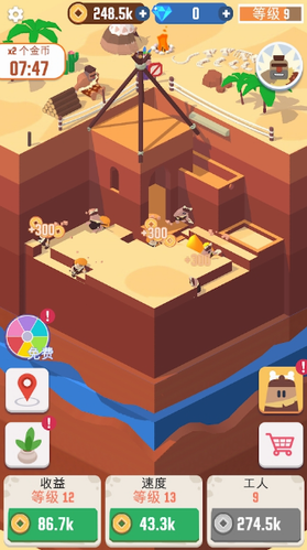 2、招募更多工人,升级最新采矿设备,扩建规模,成为游戏中最大的矿产老板。