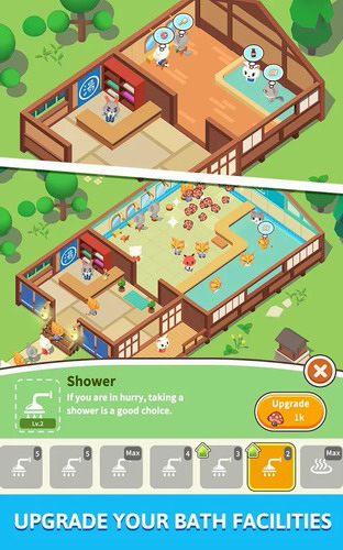 1、玩起来非常容易上瘾,还有离线收入系统,即便是你离开了浴场还是会持续运营下去。