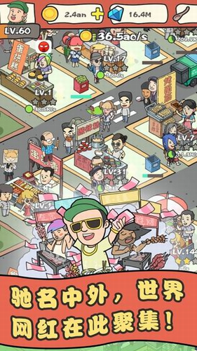 用你的商业眼光来进行经营,网红美食街无限金币版是一款非常搞笑和有梗的模拟经营类游戏。现如今,越来越多的网红小吃出现在了人们的视野。而在这款游戏中,你要做的就是经营专门提供网红小吃的商业街。你可以放置各种摊位,包括烤面筋、窝窝头、串串香等,你还可以采取邀请明星或者模特的方式来吸引人气,让你的生意越做越好。游戏采用卡通风格打造,人物形象非常的生动有趣。