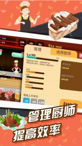 2、放置性的经营餐厅,十分简单的游戏操作,可以快速上手,享受经营餐厅的乐趣。