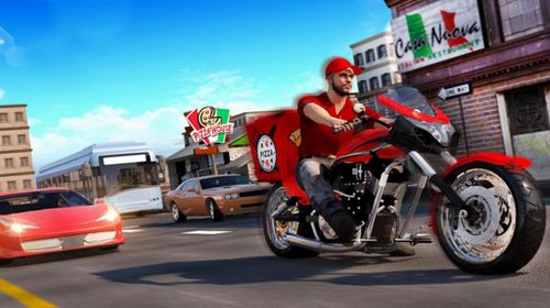 驾驶摩托车开始日常工作,披萨送货员模拟中文版是一款趣味模拟经营游戏,成为一名披萨送货员,最主要的任务就是将披萨准时送到客户手中,会有各种不同难度的运送任务需要你来完成,是时候展现自己高超的驾驶技术了,在配送中需要你注意好速度,只有顺利送达才算任务完成哦,游戏玩法众多,趣味无穷,快来一起加入吧。