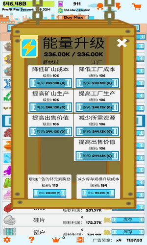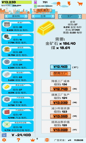 2、卖出商品以升级工厂和矿山。更高级的工厂拥有越来越复杂的生产链。