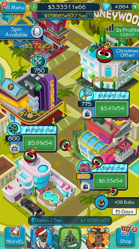 2、通过升级建筑物和在城市投资,不断点击赚取财富和金钱。