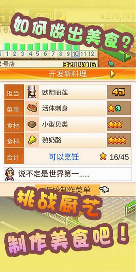 3、选择自己的职业,开发自己的新菜和食材探险;