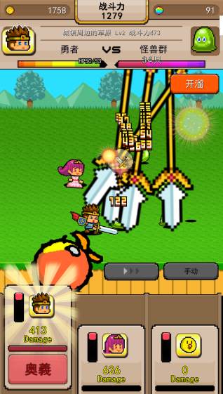 1、只需点击屏幕,勇者就会痛殴敌人;