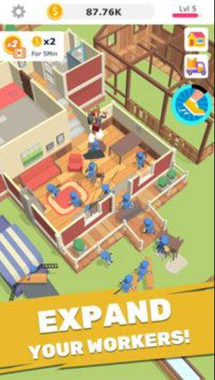 闲置装饰公司无限金币版是一款趣味十足的模拟经营手游,玩家在进入游戏后,可以拥有一家属于自己的装修公司,你可以通过招聘的方式来招很多有经验的工人,让他们进行房屋的装修,不管是摩托大楼、树屋还是多种房屋类型,都可以进行装修,游戏中虽然每天都很忙,但是看到满满的金币回报,内心感觉也是超级幸福的,自动系统释放你的双手,作为老板你需要安排工作就好,其余的员工会完成,合理使用手中的资金,最大化整体收益,快速发展起来装修公司。