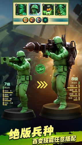 1、多款珍藏版英雄军种帅气来袭,技能装备自由搭配,玩家可全方位打造自己的专属玩具兵团。