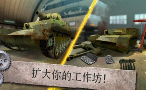 2、各种修理工具应有尽有,你能够操控自己的工具对每一款坦克进行修理的操作。