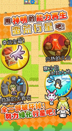 ps:修改无限体力,天使羽毛使用不减反增,重生蛮荒行星无限体力版是一款星球像素风策略模拟经营类游戏,,采用新颖的像素风格玩法,超级让人入迷的游戏剧情,独特风味的模拟游戏,让你回味无穷。游戏中玩家将成为一名天使,重建一个被众神之首「女神」不小心弄出来的沙漠星球,简单又丰富的特点相结合,看似没啥感觉,但是玩起来让人着迷,让玩家感受沙漠绿化的重要性,通过点触玩法,将沙漠大地生长出植被,运用你的神力,去引出地下的泉水,不断去扩大你的绿化面积。这款游戏还有着好玩的城镇建设,玩家通过绿化来吸收更多的人口,人多了小村就慢慢的发展成一个城市发展富裕,成为星球中唯一的国家,小啦咪真的是可爱到爆了,每次说话的时候都会带上自己的名字啦咪,真的快被啦咪洗脑了,有了啦咪的陪伴游戏确实不会觉得无聊,而且很奇怪的是啦咪就好像能猜到玩家在想什么,不知道干什么的时候点一下啦咪就知道要干嘛了,没有想过自己会成为天神,当然在游戏中幻想一下还是不错的,看着自己让一个原本荒芜的星球变得如此热闹还是挺欣慰的哇,这款游戏的内容是真的很丰富,而且还有各种小故事,对话也比较有意思,喜欢的乐友可以试试,下一个天神就是你哦,感兴趣的玩家们可以在这里下载体验。