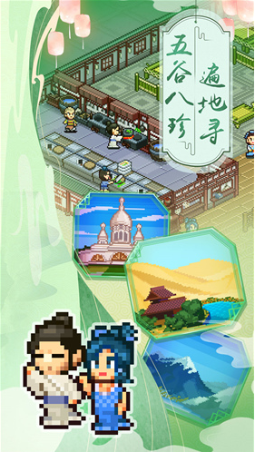 1、像素风格的经营模拟游戏,各种各样的美食文化展现玩家眼前;