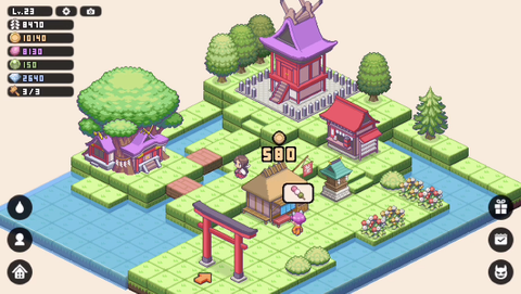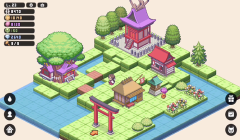 1、对于游戏的画质而言,自然是精益求精。但过多的追求高画质,也会对手机的配置产生负担。而像素的画质就可以解决这些问题,又能给玩家一种古朴,可爱的观感。游戏主打休闲玩法,玩家只需要布置好地形和神社就可以跑到一边玩去,完全不用担心神社的运作,甚至在游客祭祀时都可以与游客互动。