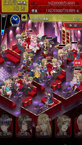 2、作为一家黑店,你还要引诱顾客们大笔砸钱,然后升级店铺,解锁更昂贵的酒水,招来更加帅气的牛郎,走上人生巅峰;