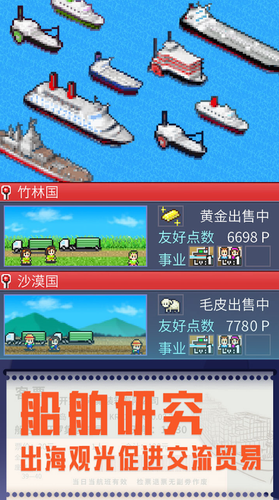 1、建立你的研究所,开发出更多大受欢迎的商品,发展港口并吸引更多的海外观光客。