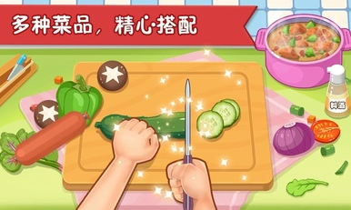 不仅对于孩子的动手能力是种训练,对于菜品的搭配选择也是充分了诱惑力,在这里来往顾客当中要点的菜品各有不同,玩家需根据菜品的特色来使用煎、炸、蒸、烤来完成成品的制作,从菜品选择到加工,再到菜品的搅合或者翻炒,一共分为三步,每一步的制作都非常简单。