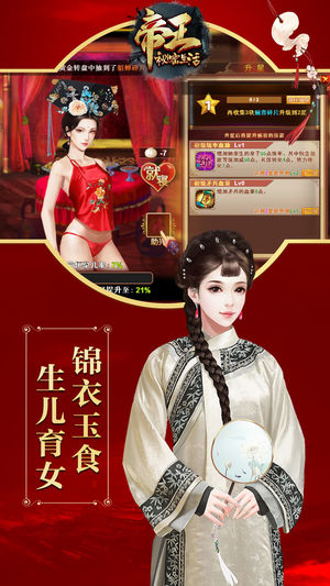 皇帝的秘密生活可以从手机上下载,带你回到远古,感受皇帝的奢华生活。这是一款全新的以清朝为背景的模拟手游,会让你的国家更强大,保住你的王位,席卷全球!