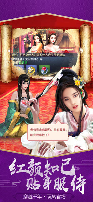 高清游戏画面还原了古皇城的红墙绿瓦,仿佛置身于游戏之中,让玩家穿越远古,开启宫廷成长之旅。更重要的是,我们可以与我们的盟友联手争夺世界,攀登权力的巅峰。
