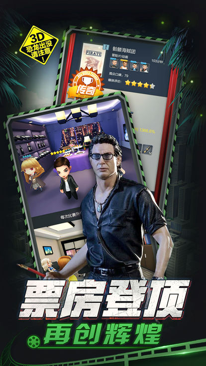 首款影视题材模拟经营类手游,成就影视大亨近在眼前!让你体验招募明星,课程培训,拍摄电影。游戏拥有着高拟真的影视经营体系,收集明星,拍电影。市场宣传,夺取电影节大奖;与你的明星团队参与影业大赛,登顶影视巅峰。