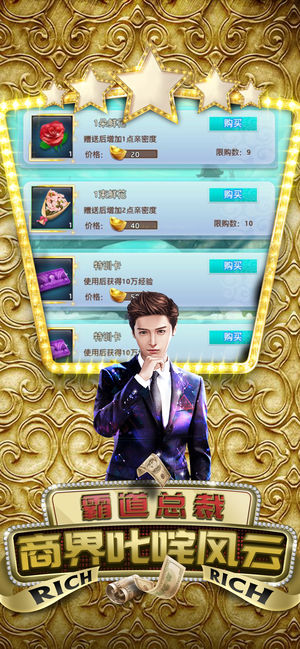 一款都市总裁养成手游,玩家将饰演一位身价千万的公司总裁,经营公司,商业谈判,邂逅美女,坐拥一个完美人生。总职场小白到极品BOSS,开创属于自己的光明前途。