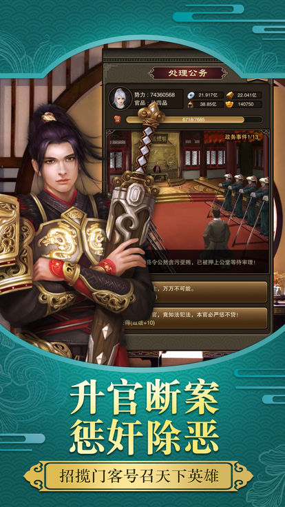 一品相公手游下载是一款以古代官场为背景打造的模拟手游,从小官做起,通过自己的努力一步步崛起,打造你的力量,成为乱世大英雄还是乱世之王都由你来决定!我最喜欢的朋友,来下载吧。