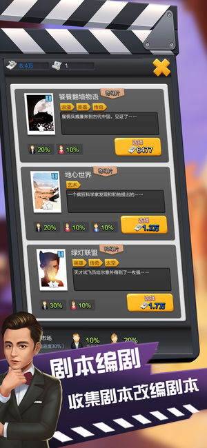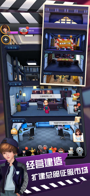 头号票房手游下载是一款根据经典的开罗游戏打造的模拟经营类手游,经营一家属于你的影视公司,收集众多你喜欢的明星,选取你喜欢的影视剧本来拍摄,打造属于自己的影业帝国!