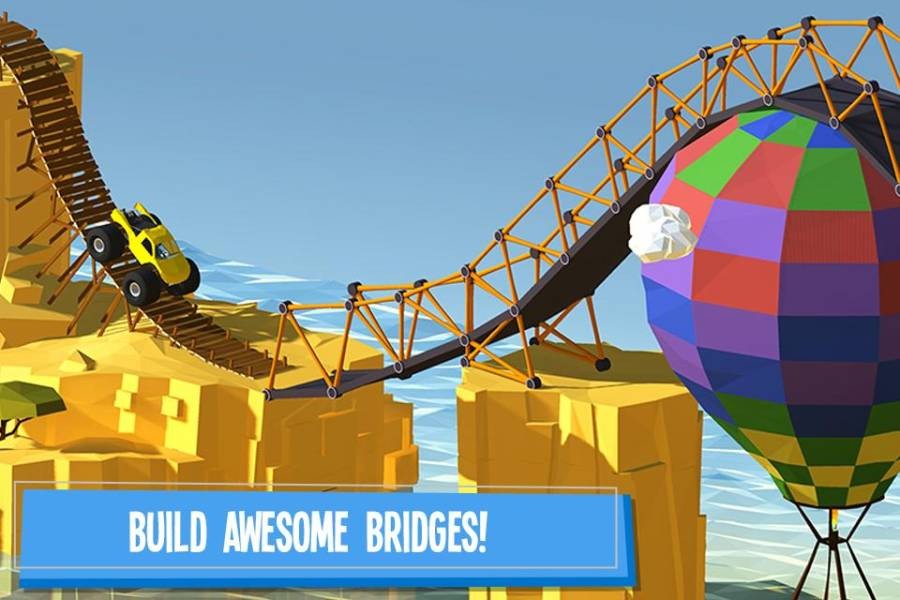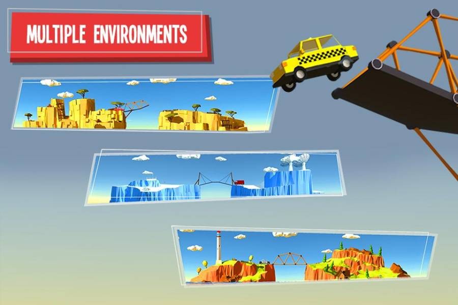 你可以用你的想象力建造一些滑稽但有效的桥,完成后,切换到3D模式并观看车辆过桥。