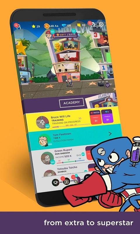 非常有趣的玩法主题,在这里拍摄你的好莱坞电影,40多位传奇好莱坞演员,可以随意选择打造最热门的电影话题之一,让你获得更多客户的喜爱。培养各类型电影的优秀人才,让你的电影公司不断发展,成为大家都喜欢的电影公司。