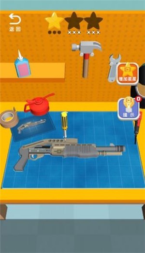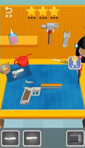 武器模拟器枪支组装是一款非常有趣的REST模拟游戏,你会在游戏中看到各种不同的枪支,并尝试拆卸它们,3D卡通风格的画面为你带来全新的视觉效果,近距离体验枪支组装过程、大量关卡等,各种枪支给你带来全新的体验,还有特别的小贴士可以让你更轻松地完成这次组装。