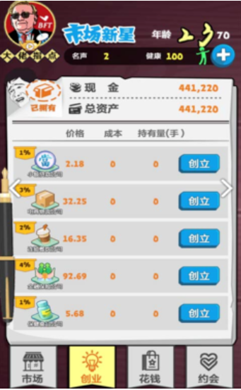 巅峰玩家是模拟游戏,玩家会成为地产大亨,但需要从底层做起,一开始需要拿到启动资金和别人协商合作,才能拿到第一笔资金投资。你需要规划你的发展方向,通过招募员工来帮助你们共同运营公司,你需要扩大你的行业,一步一步地扩大你的商业帝国。