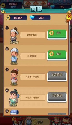 乞丐发财是一款非常有趣的休闲安置游戏,古色古香的卡通画面,Q萌萌的造型有趣好玩,通过合成的方式让小乞丐不断守护财富,用头脑的智慧去完成一个又一个试演人物,解锁闪亮的成就,合成人物的水平越高,你带来的福利就越多,你就会慢慢走上一条从小乞丐到百万富翁的致富之路。获得轻松的解压体验。