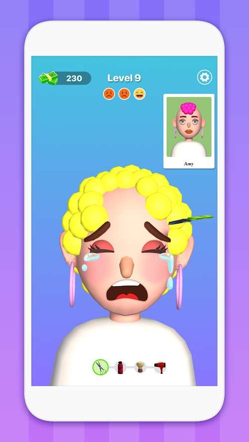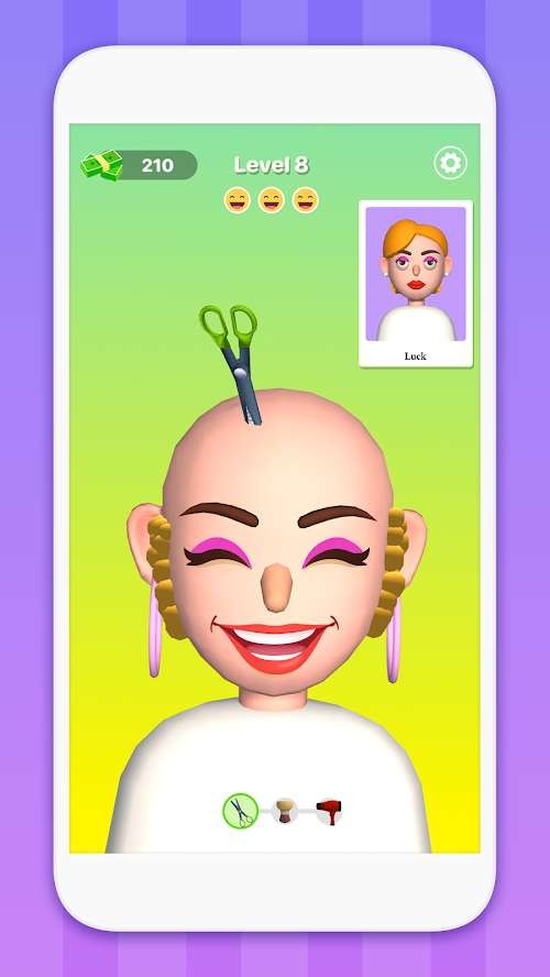 在这款游戏中,玩家会用不同的玩法让每位客人在关卡得到满意的发型,满意的程度会让你更有成就感。通过每一张照片的配方,让更多玩家通过自己的理发技巧,打造极具个性化的发型,获得神奇的氛围和体感。