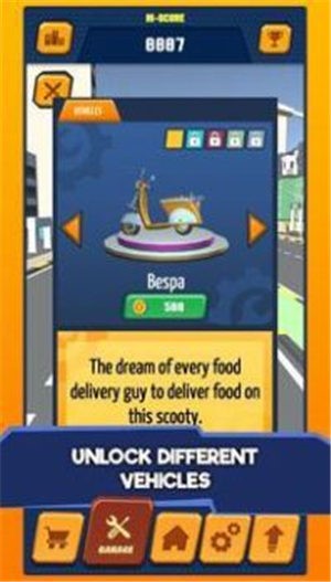 手中的金币不断升级电瓶车,让电瓶车更快。同时可以装更多的快餐,这样你就可以获得更多的收益!