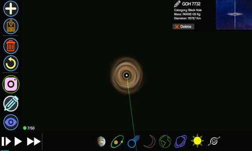 5.你可以很容易地创造出新的小行星、行星、恒星(甚至黑洞!)。并观察它们与牛顿物理学的实时相互作用和轨道。6.一个完整的编辑器,可以创建小行星、矮行星、岩石行星、气体行星、四个不同的恒星和黑洞。此外,您还将获得构建完整原始太阳系、小型行星场、双星系统等的工具!