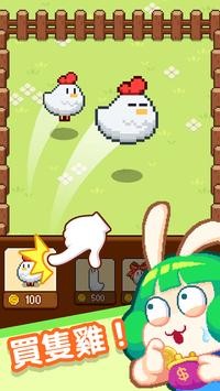 1,可爱的像素风格画面,这款游戏有非常不错的像素风格画面,2、玩法简单,游戏类似于常见的合并游戏,通过合并得到有经验的鸡,通过鸡蛋得到金子。