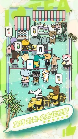 奶茶店的工作人员是一些非常可爱的小猫,可以吸引大量的顾客。